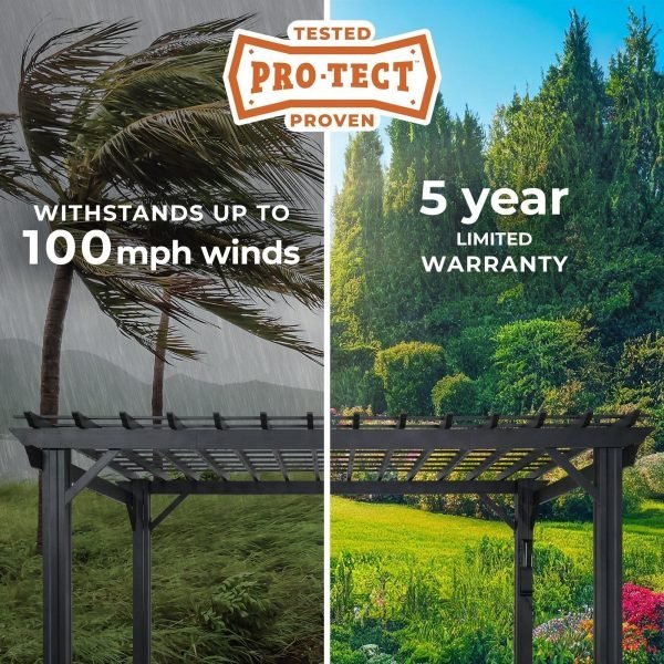 Step up your outdoor space with our Stratford steel pergola. Combining classic style with modern resilience, this sophisticated pergola, finished in sleek black, is built from super-strong, rust-resistant galvanized steel. Plus it’s