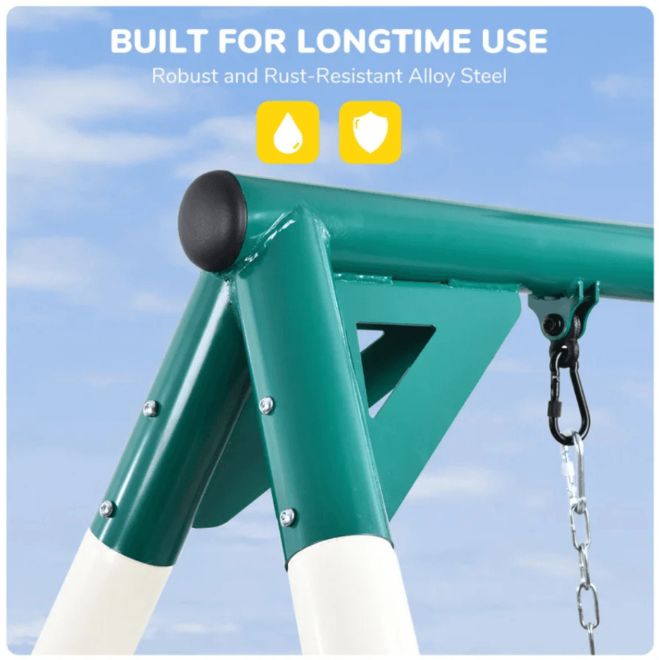 The Heavy-Duty Outdoor Porch Swing Set provides endless outdoor excitement for kids and teens. With three swing seats—including one saucer swing and two EVA belt swings—this versatile set offers thrilling flying fun while also allowing you to easily switch out swings for other attachments. Designed with safety, durability, and easy setup in mind, this swing set is a perfect addition to any backyard.