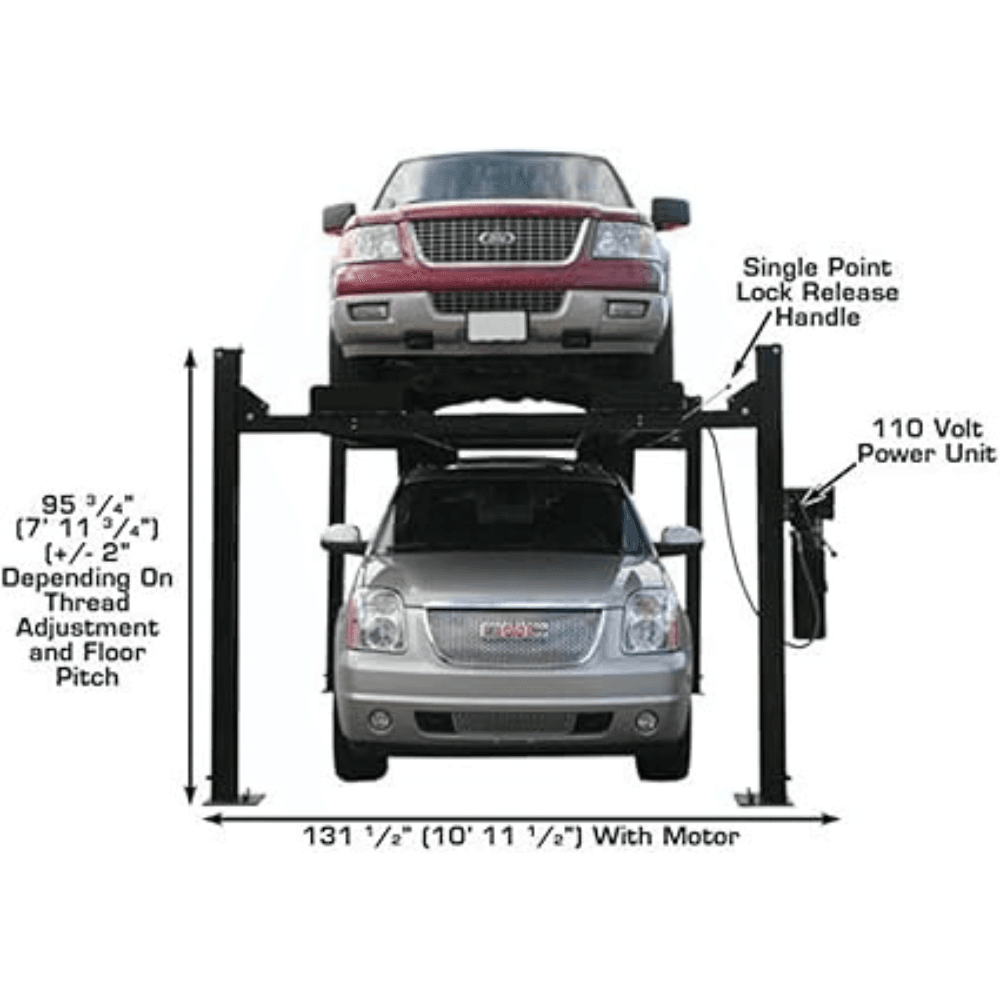 - 9,000 lb. Lifting Capacity – Supports cars, SUVs, and light to heavy-duty trucks.