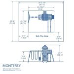 With the Monterey Swing Set, your children can enjoy all the charm and fresh air of a summer shore house combined with classic playset activities. This beautifully designed set features an upper clubhouse with a ladder and rock climbing wall entry points, a balcony, peaked roof, and diamond-shaped peep holes for endless imaginative play.