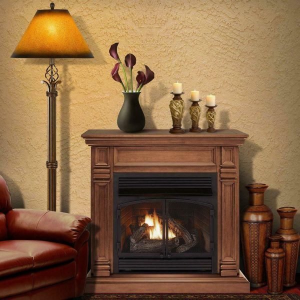 Duluth Forge Dual Fuel Ventless Gas Fireplace With Mantel – 32,000 BTU, T-Stat Control, Toasted Almond Finish – Model# DFS-400T-2TA