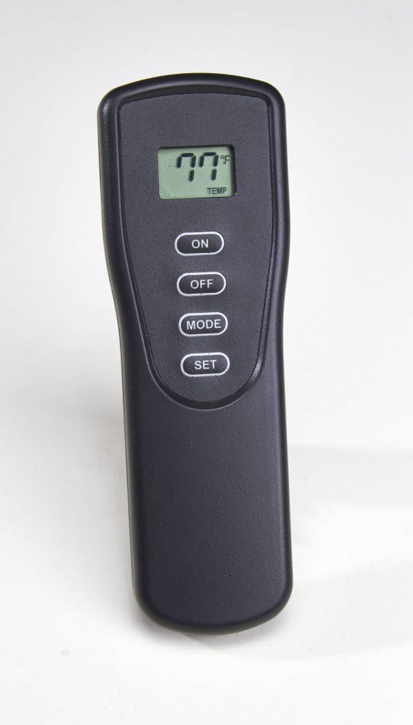 - The LCD screen of the remote control displays current room temperature in °F or °C, Burner On/Off Indication and Thermostat or Manual Mode Indication.