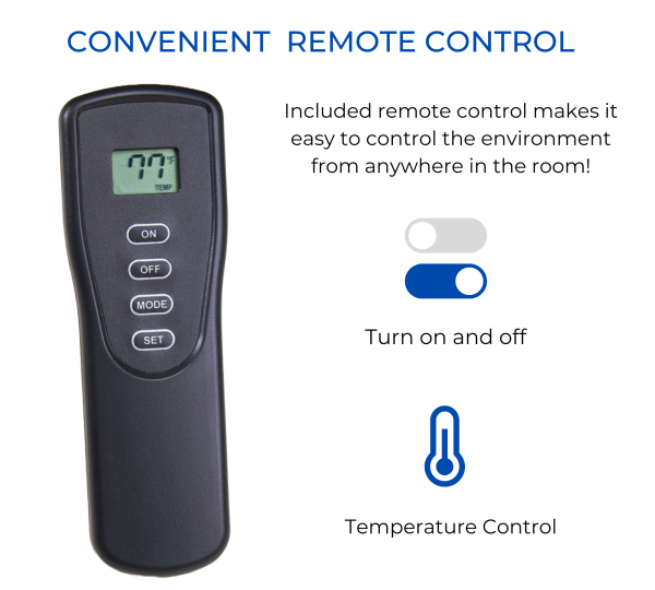 • Remote Control Functions: On/Off, Temperature Control