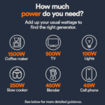 Delivers from 200W (starting wattage) to 2,500W of continuous power, making it ideal for powering sensitive electronics, essential home appliances, and outdoor equipment.