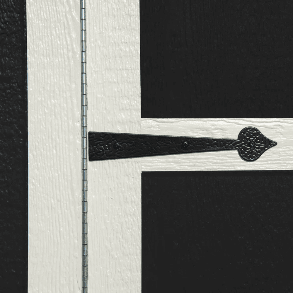 Factory-primed siding is ready for paint, allowing you to match the shed to your home’s exterior.
