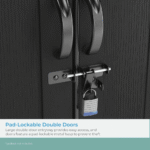 - Pad-lockable metal hasp enhances security and theft prevention (padlock not included).