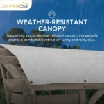Wish you could entertain friends outdoors more comfortably? The Sunjoy Bellucci 10 ft. x 14 ft. arched cedar pergola with a weather-resistant light grey canopy offers the perfect shaded retreat for sunny days. Its elegant arched design, premium cedar wood frame, and built-in shelves create a stylish and functional outdoor oasis for gatherings, relaxation, or dining al fresco.
