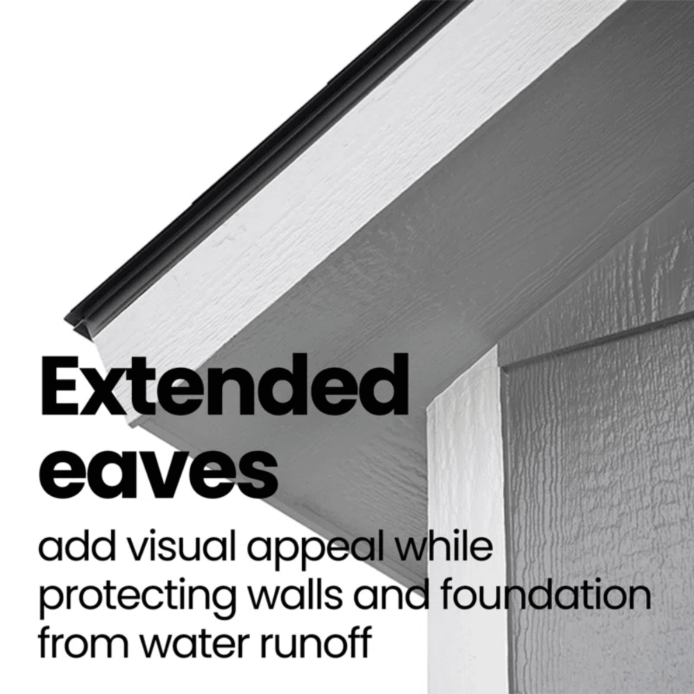 The Handy Home Windemere 10×12 Storage Shed is a spacious and stylish outdoor structure, designed for storage, workshops, or creative studios. Featuring extended architectural roof overhangs and a dormer, it blends functionality with contemporary aesthetics, making it a standout addition to any backyard.